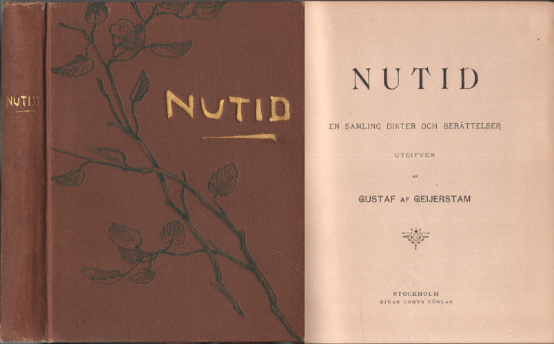 Utgifven af Gustaf af Geijerstam. Stockholm: Ejnar Cohn, 1891. 223, (1) s. Inbunden i förlagets dekorerade klotband (Herzogs) med övre guldsnitt.