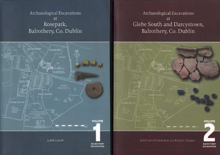1. Judith Carroll: Archaeological Excavations at Rosepark, Balrothery, Co. Dublin. 2. Judith Carroll, Frank Ryan and Kenneth Wiggins: Archaeological Excavations at Glebe South and Darcystown, Balrothery, Co. Dublin. Dublin: Judith Carroll & Company, 2008. 140 and 168 pp. 2 volumes in publisher's printed soft cover. Illustrated in black-and-white and colour. ISBN 9780955958403; 9780955958410