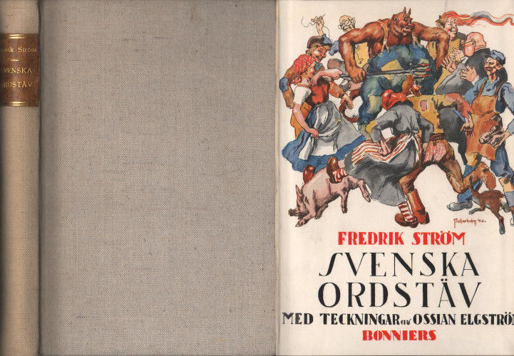 Stockholm: Bonniers, 1939. Ny upplaga. 293 s. Inbunden i ett privatbundet klotband, främre omslag medbundet. Illustrerad med svartvita teckningar av Ossian Elgström.