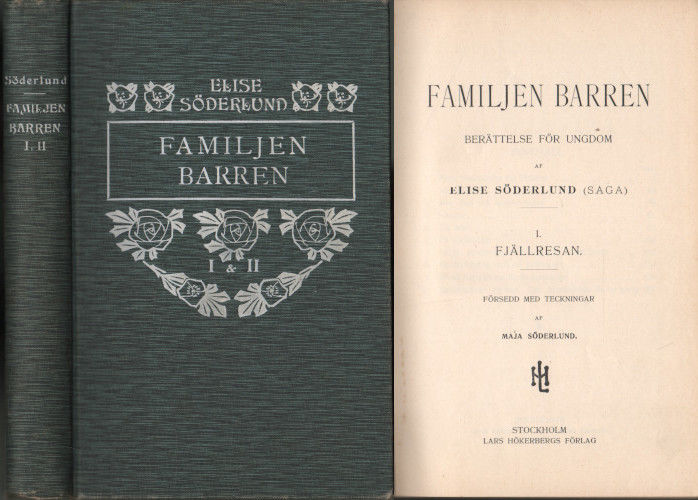 Stockholm: Hökerbergs, 1905-6. 218; 170, (2) s. Två delar inbundna i en volym i förlagets, obetydligt nötta, dekorerade klotband. Illustrerad i svartvitt av Maja Söderlund. Med gåvotillskrift på det fria försättsbladet.