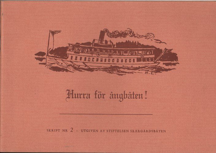Stockholm: Stiftelsen Skärgårdsbåten (Skrift nr 2), 1967. 35, (1) s. 15x21 cm. Klammerhäftad. Illustrerad i svartvitt bl. a. med teckningar av Harry Karlsson.