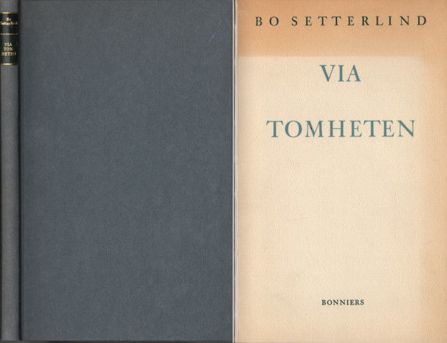 Stockholm: Bonniers, 1958. Originalupplagan. 75, (5) s. Handbundet pappband (Pernilla Meyer 1985, Stockholm) med övre guldsnitt, omslaget medbundet. Främre omslag delvis något mörktonat.