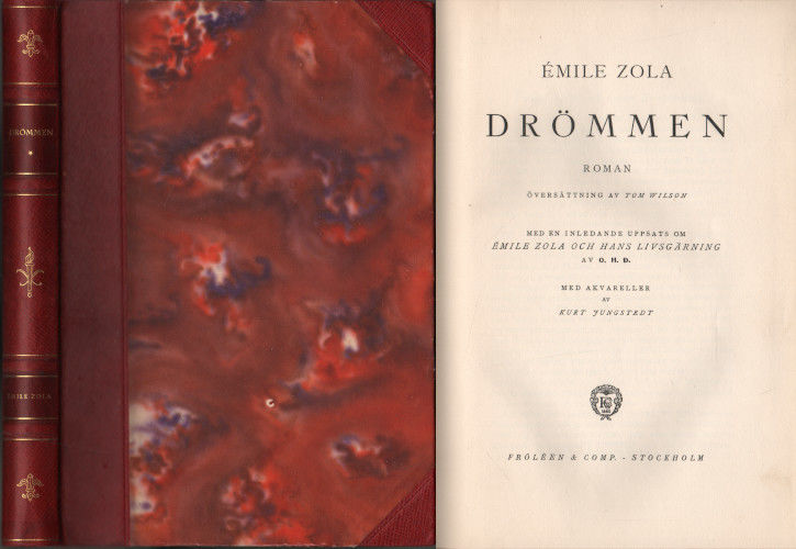 Roman. Översättning av Tom Wilson. Med en inledande uppsats om Émile Zola och hans livsgärning av O. H. Dumrath. Stockholm: Fröléen, 1927. Ny svensk upplaga. 246 s + planscher. 24,5x17 cm. Inbunden i förlagets halvskinnband. Illustrerad med 4 planscher i färg av Kurt Jungstedt.