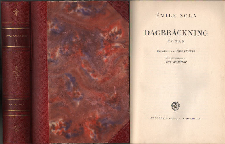 Roman. Översättning av Göte Bjurman. Stockholm: Fröléen, 1927. Ny svensk upplaga. 582 s + planscher. 24,5x17,5 cm. Inbunden i förlagets halvskinnband. Illustrerad med 4 planscher i färg av Kurt Jungstedt.