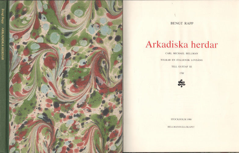 Stockholm: Bellmanssällskapet, 1980. Upplaga 600 exemplar. 64 s. 26,5x20,5 cm. Inbunden i förlagets klotryggsband med marmorerat pärmpapper. Illustrerad i svartvitt. ISBN 9197030503