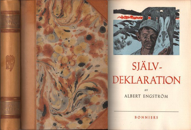 Stockholm: Bonniers, 1944. Valda berättelser. 345, (3) s. Inbunden i förlagets halvskinnband med övre guldsnitt och ryggdekor, främre omslag medbundet. Illustrerad i svartvitt av författaren.