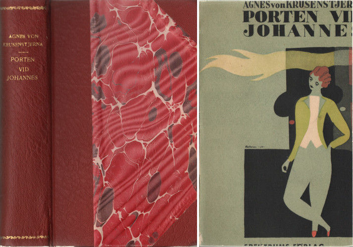 (Fröknarna von Pahlen IV). Stockholm: Spektrum, 1934. Andra upplagan. 416 s. Privatbundet halvklotband, främre omslag av Adolf Hallman medbundet (dock något hårt beskuret). Med exlibris på omslagets baksida.