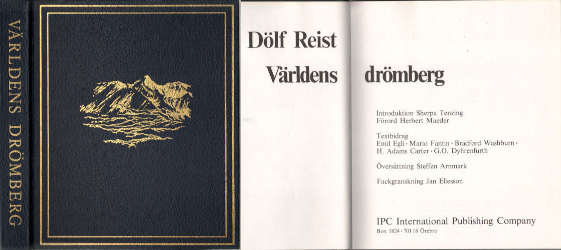 Introduktion Sherpa Tenzing. Förord Herbert Maeder. Textbidrag Emil Egli, Mario Fantin, Bradford Washburn, H. Adams Carter och G. O. Dyhrenfurth. Fackgranskning Jan Ellesson. Örebro: IPC International, 1979. Upplaga utgiven i 999 numrerade exemplar, varav detta ett av de 799 numrerade med arabiska siffror. 322 s. 29x24,5 cm. Inbunden i förlagets dekorerade konstskinnband med övre guldsnitt. Rikt fotoillustrerad övervägande i svartvitt. ISBN 9171282092