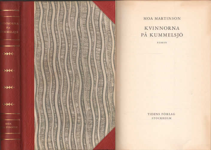 Roman. Stockholm: Tiden, 1955. Andra upplagan. 322, (12) s. Inbunden i förlagets halvskinnband med övre guldsnitt och ryggdekor. Utan skyddsomslag.