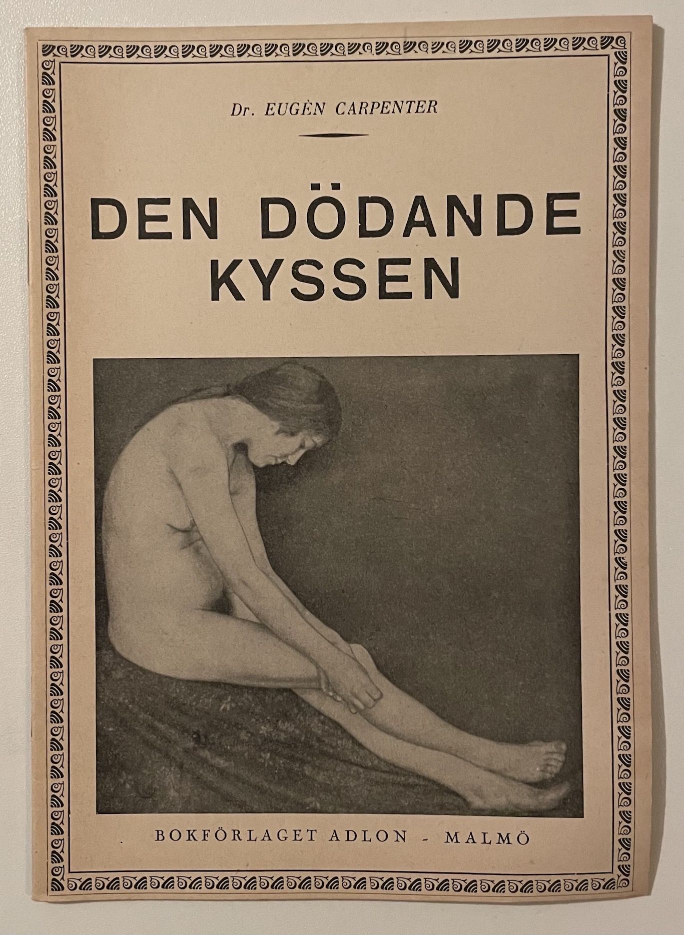 Malmö, 1933. 16 s. inklusive omslag. Klammerhäftad i fotoillustrerat omslag. Mycket svagt veck i nedre yttre hörnet. Utgiven av bokförlaget Adlon. Författarens namn felstavat "August Porel" på omslaget. Berör även till viss del manlig homosexualitet. Med referenser till bland andra Magnus Hirschfeld och Richard von Krafft-Ebing. Auguste Forel (1848-1931) var en schweizisk läkare och skrev bland annat "Die sexuelle Frage" 1905.