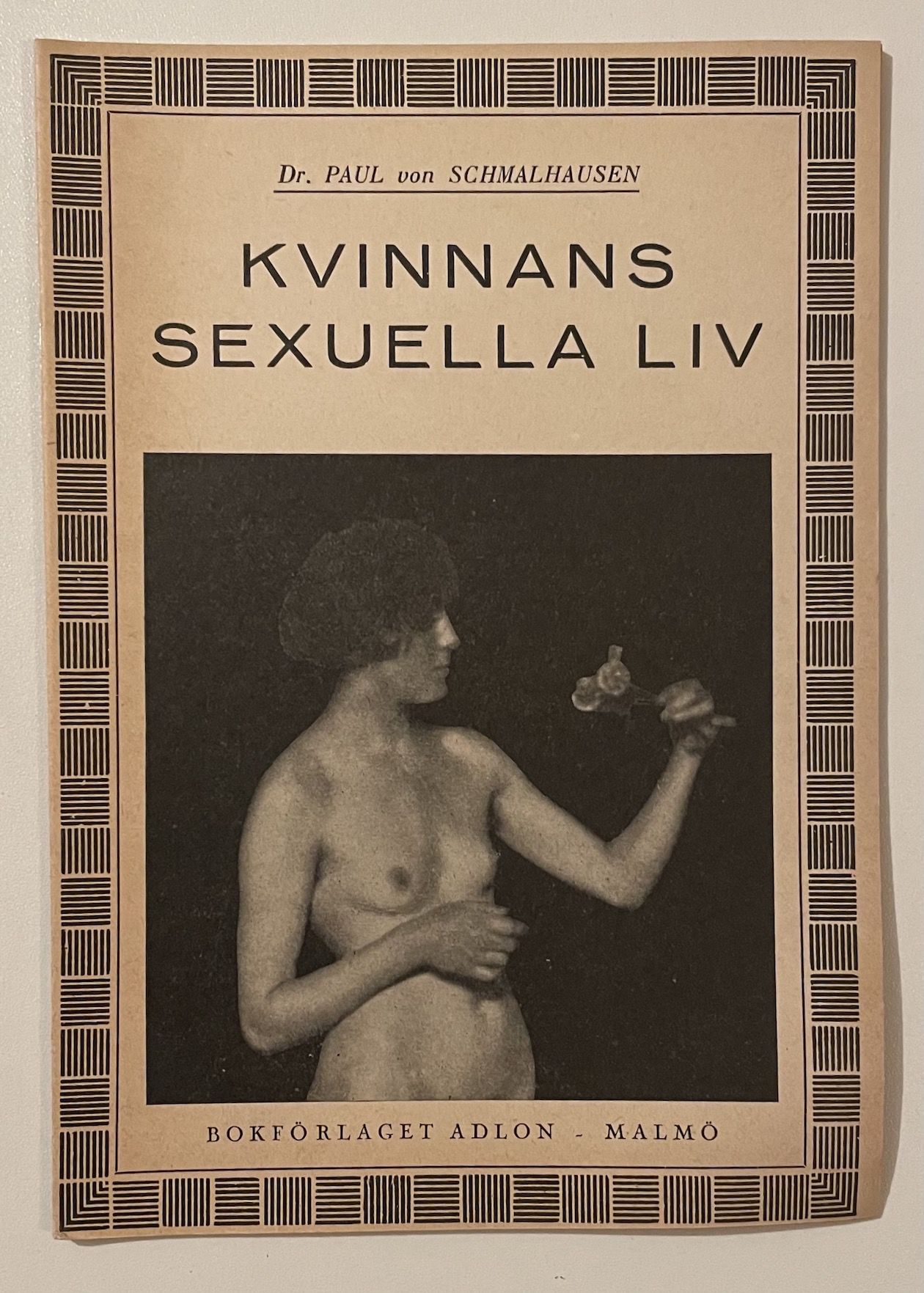 Malmö, 1933. 16 s. inklusive omslag. Klammerhäftad i fotoillustrerat omslag. En liten röd fläck på främre omslaget. Mycket svagt veck i nedre yttre hörnet. Utgiven av bokförlaget Adlon. Med tre planscher medräknade i pagineringen: ”Tvärsnitt genom de kvinnliga könsorganen”, ”Äggstock med äggledare / Mänskligt ägg andra veckan efter befruktningen” och ”Havande kvinna”.