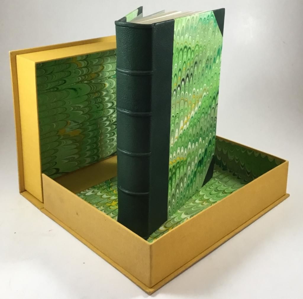 Max Hettler Verlag, Stuttgart 1964. 392 pages + advertisements. Illustrations in b/w. Bound in a fine green half-morocco binding with matching, marbled paper covering boards. In handmade cloth box with the same marbled paper inside.