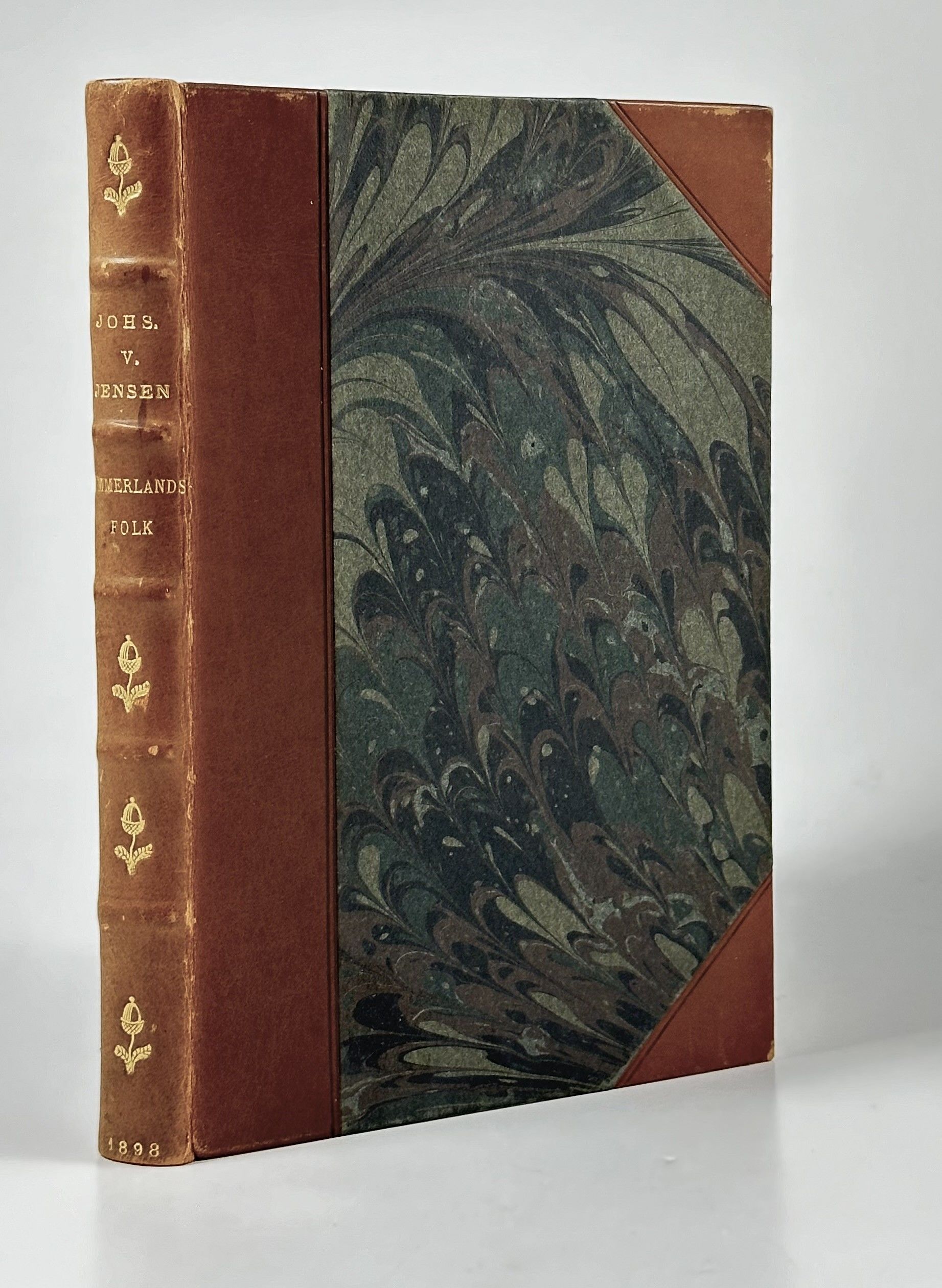 Det Nordiske Forlag/Ernst Bojesen, København 1898. 161 sider. Indbundet med det originale blommefarvede foromslag i et smukt samtidigt halvbind af brunt kalveskind med rygforgyldning og tresidet brunmarmoreret snit.