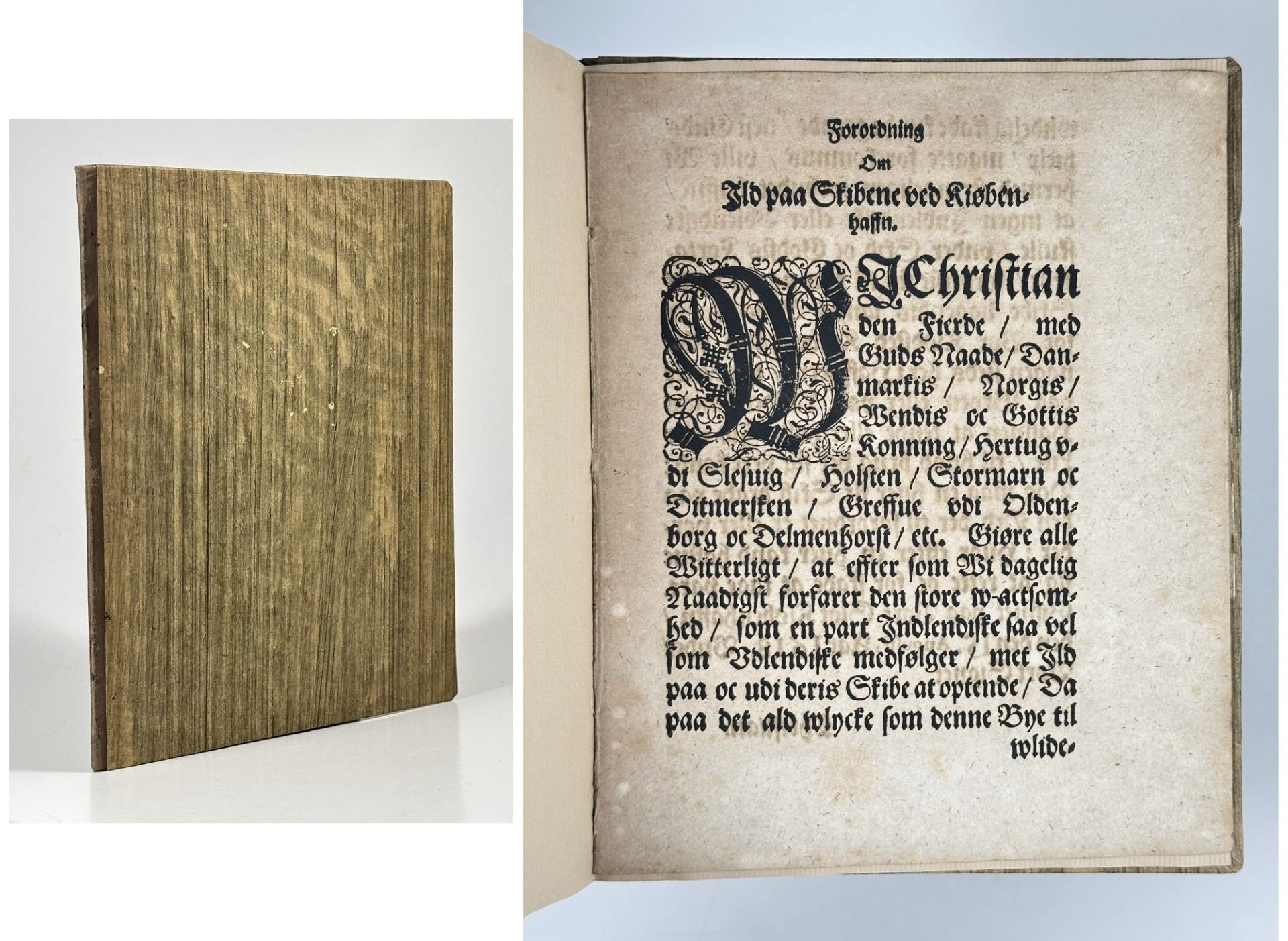 København 1618. 4to. 2 blade. I marmoreret papirbind med skindryg.