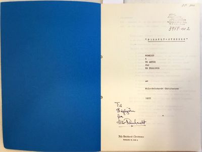 Oslo 1977. Nils-Reinhardt Christensen. 4to. 87 s. Rollehefte. Kompendiuminnbinding utan ryggtekst. Nøytralt blått omslag. Stempel. I god stand Dedikasjon på tittelbladet: ""Til Sigbjørn fra Nils-Reinhardt""