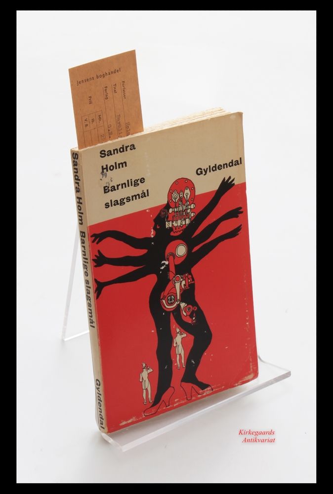 1. oplag. "Sandra Holm kom fra Luleå til Danmark i 1964. Hun blev uddannet på Den grafiske Højskole, arbejdede som lærer og freelance-medarbejder ved Danmarks Radio og var fra 1964 til 1972 gift med forfatteren Sven Holm. Hun debuterede i 1969 med en samling mytiske prosatekster, Barnlige slagsmål, der udkom både i Sverige og Danmark. De tætte, billedrige tekster kredser om oplevelser af graviditet og død, mens forestillinger om slægt og forældre hvirvles op i den unge kvindestemmes beretning. Stærke kropsoplevelser overvælder og skaber digterisk vision. Et surreelt og mytisk kvindeunivers bliver til. Også den tosprogede digtsamling Indlandsbilleder, 1973, og den danske At kalde dyrene sammen, 1975, bliver til mellem bevidst og underbevidst, mellem nordiske livsrum og kulturer og med en ny sproglig dristighed og grotesk humor i opfattelsen af køn og kærlighed. I romanen Har jeg været her før, 1978, beskrives rusen, orgasmen, kunstens tradition og hverdagens banale indtryk som forudsætning for det kunstneriske arbejde. Sandra Holms korte forfatterskab aktualiseres af 1980’erne og 1990’ernes unge, eksperimentelle kvindeprosa."