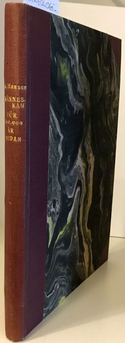 Stockholm 1918. Hugo Gebers Förlag. Trykt hos Victor Pettersons bokindustriaktiebolag. Stor 8vo. 115 s. Rikt illustrert med bilete av oldfunn, hovudskallar m.m. Pent burgunder ryggsjirtingbind med marmorerte overtrekk og gullfarga ryggtittel. Pen