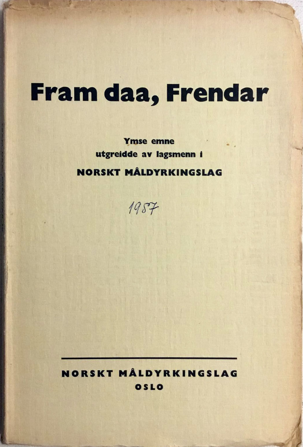 Oslo 1957. Norsk måldyrkingslag. Stor. 8vo, 112 s. Hefta. Lyst omslag med svart ryggskrift, I god stand