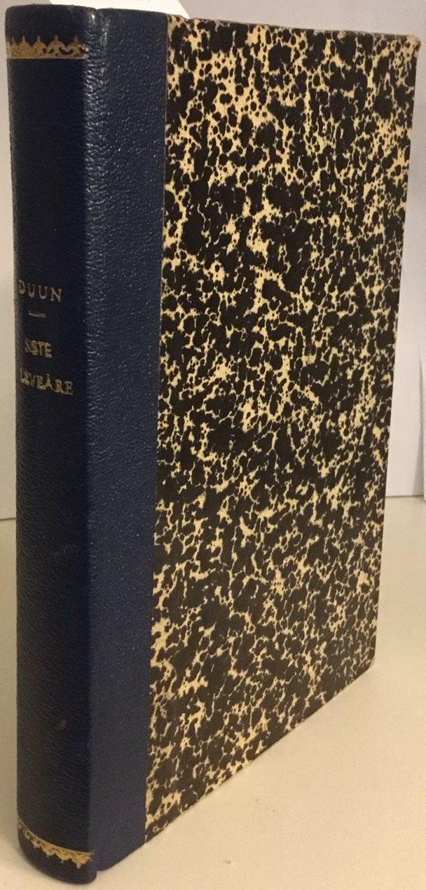 Oslo 1933. 1. utg. Olaf Norlis Forlag. 8vo. 191 s. Privatbind. Blå skinnrygg med gyllen ryggdekor og temst. Kvit og svartspetta overtrekk. Framomslaget er medbunde. Pen