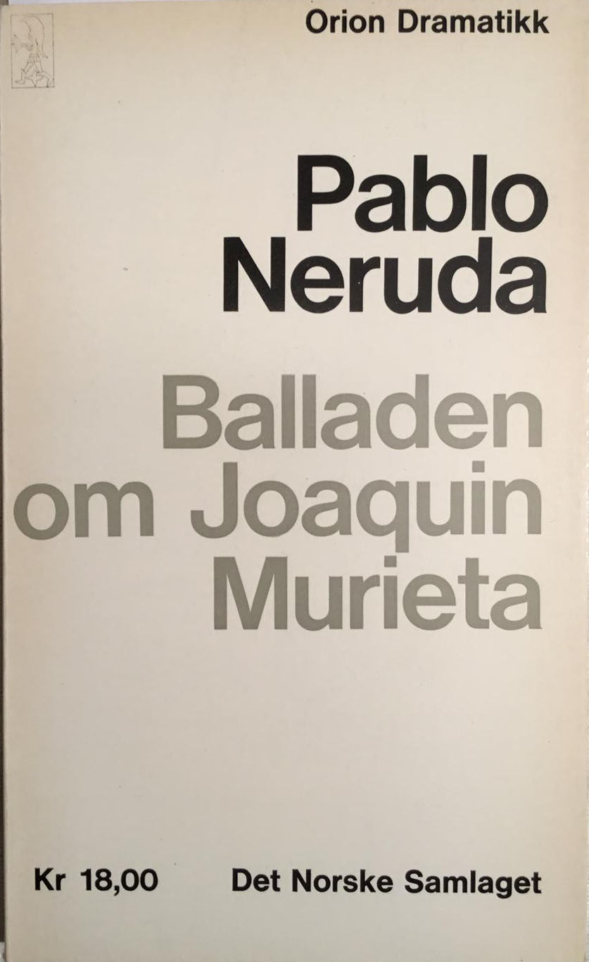 Orion Dramatikk. Orion-bok nr. 136. Originaltittel: Fulgor y muerte de joaquin murieta. Pablo Neruda (1904–1973) var psevdonymet til den chilenske diktaren, diplomaten og kommunisten Ricardo Eliecer Neftalí Reyes Basualto, han vert rekna for å vera ein av dei beste diktarane i Latin-Amerika på 1900-talet. Neruda fekk Nobelprisen i litteratur i 1971
