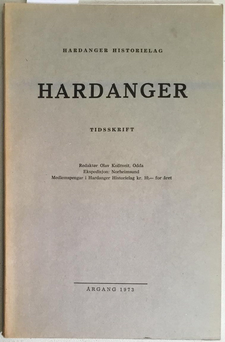Norheimsund 1973. Hardanger Historielag. Stor 8vo. Paginert 269-412. Nokre illustrasjonar. Hefta. Grått typografisk omslag. Pen