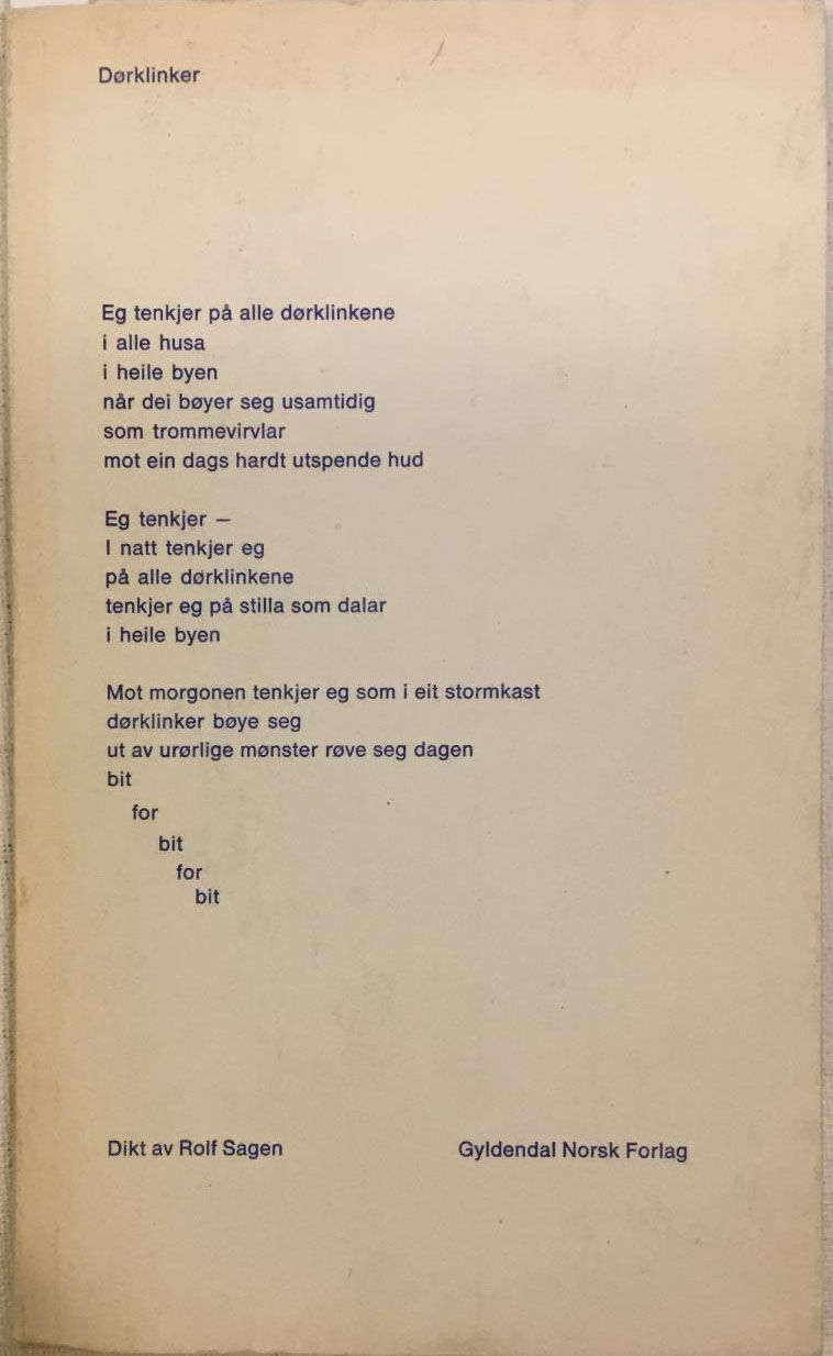 Oslo 1966. Gyldendal. 8vo. 75 s. Hefta. Lyst omslag med blå ryggtekst. I god stand