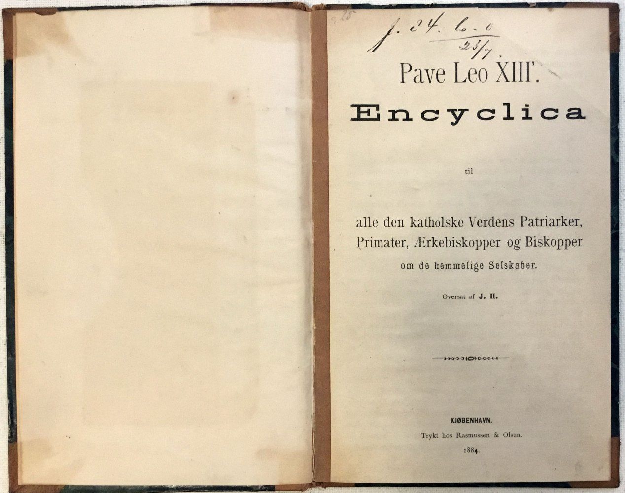 Encyclica til alle den katholske Verdens Patriarker, Primater, Ærkebiskopper og Biskopper om de hemmelige selskaber. Oversat af J. H