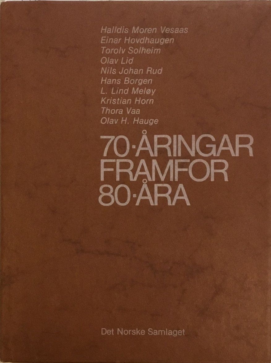 Oslo 1973. Samlaget. Liten 8vo. 122 (+ 1) s. Originalbind med smussomslag. Brun rygg med grå tekst. Pen