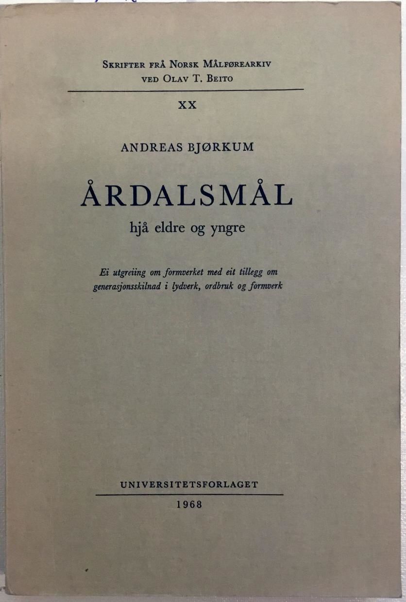 Årdalsmål. Hjå eldre og yngre. Ei utgreiing om formverket med eit tillegg om generasjonsskilnad i lydverk, ordbruk og formverk