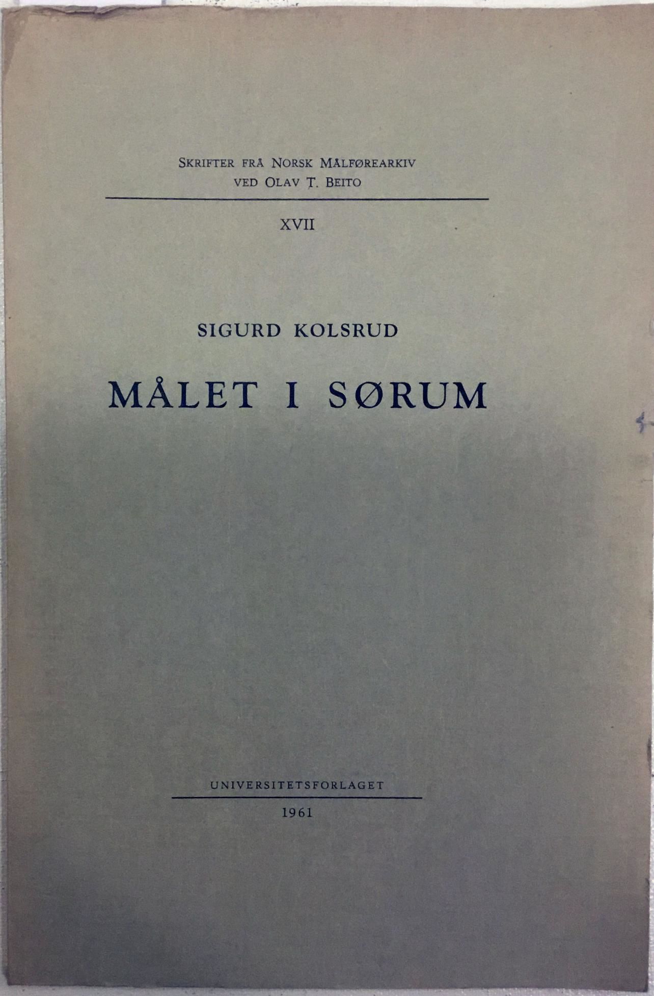 Serprent or Sørum bygdebok II. Skrifter frå Norsk Målførearkiv ved Olav T. Beito XVII
