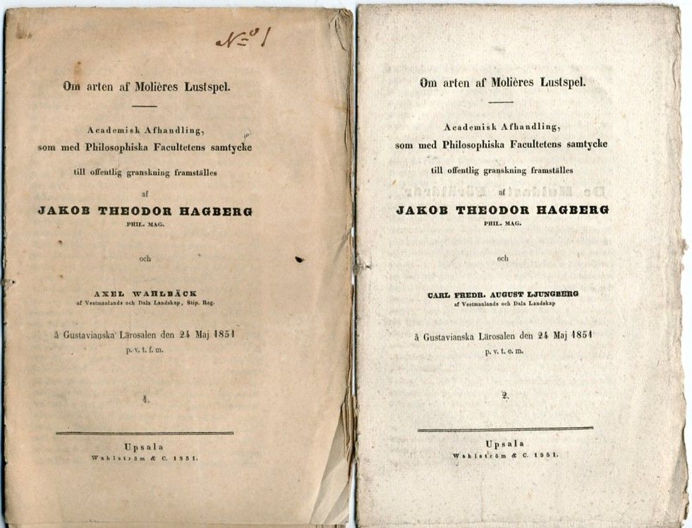 [Molière] Hagberg, Jakob Theodor (praes.) / Axel Wahlbäck & Carl Fredr. August Ljungberg (resp.)