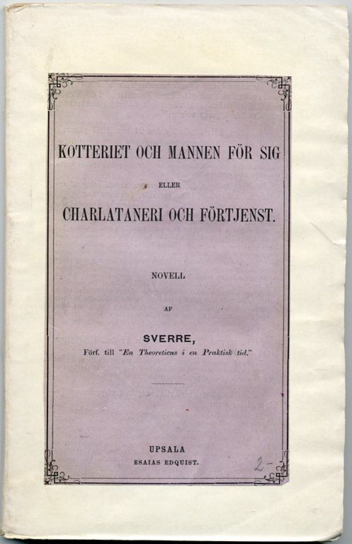 Kotteriet och mannen för sig, eller Charlataneri och förtjenst. Novell af Sverre.