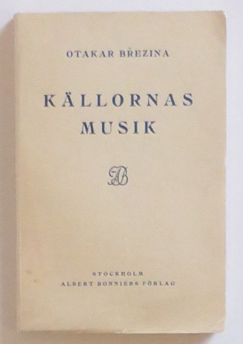 Stockholm; Bonniers, 1928. Originalets titel: Hudba pramenu? (1903). 19,5x13 cm. Porträttplansch, 150, (1, 1 blank) s. Häftad med tryckt omslag. Mestadels ouppskuren. Främre omslaget med hönveck nedtill samt ett par svaga fläckar. Fint ex. Brezina (1868-1929), tjeckisk symbolistisk poet och essäist. Boken innehåller essäerna: Det förborgade i konsten / Den högsta rättfärdigheten / Avgörande ögonblick / Tidens leenden / Perspektiv / Världens skönhet / Brödraskarorna / Invigning / Inbärgningens faror / Målen / Evig längtan. Första svenska utgåvan och första boken av Brezina i svensk översättning. Ovanlig. Åkerström, Bibliografi över tjeckisk skönlitteratur översatt till svenska s. 9.