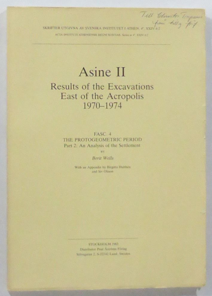 Asine II. Results of the Excavations East of the Acropolis 1970-1974. Fasc. 4: The Protogeometric Period. Part 2: An Analysis of the Settlement. With an Appendix by Birgitta Hulthén and Siv Olsson.
