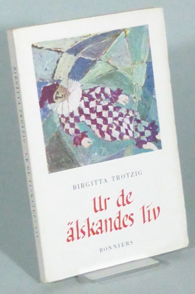 Stockholm; Bonniers, 1951. Originalupplaga. 19,5x12,5 cm. 103, (1) s. Häftad med tryckt omslag. Omslag av Ulla Sundin. Det överdimensionerade omslaget är lätt veckat i nedre marginalerna. Fint ex. Trotzigs debutbok.