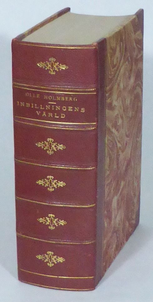 Stockholm; Bonniers, 1927-1930. 23x16,5 cm. 346 & 310 & 288 s. Osignerat samtida rött halvfranskt band med förgylld ryggdekor och upphöjda bind, marmorerade pärmpapper och försättsblad, stänkmålade snitt. Omslag ej medbundna. Gåvotillskrift på titelbladen. Ryggen obetydligt nött. Fint ex. Holmbergs huvudverk där han försöker kartlägga inbillningen och den kreativa processen. ""Inbillningens värld speglar, symboliserar eller utgör ett symtom av människosjälen. För att förstå diktens inbillningar måste man därför känna människan."" (Vol. II:2, s. 253).