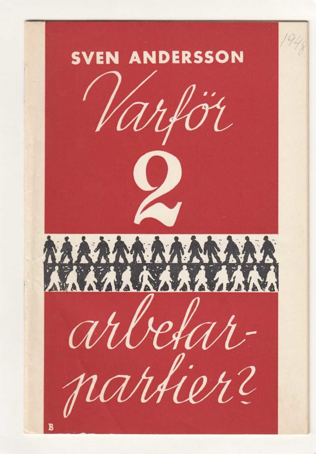 Stockholm; Tidens förlag, 1948. (Socialdemokratisk skriftserie 11). 19x13 cm. 24 s. Klammerhäftad med tryckt omslag. Fint ex. ""1948"" skrivet i blyerts på främre omslag. Debattinlägg rörande den partipolitiskt delade arbetarrörelsen med fokus på frågan om möjligheten till och möjligheterna med dess enande under ett parti. I korthet en kritik av den svenska kommunismen inför det stundande valet 1948.