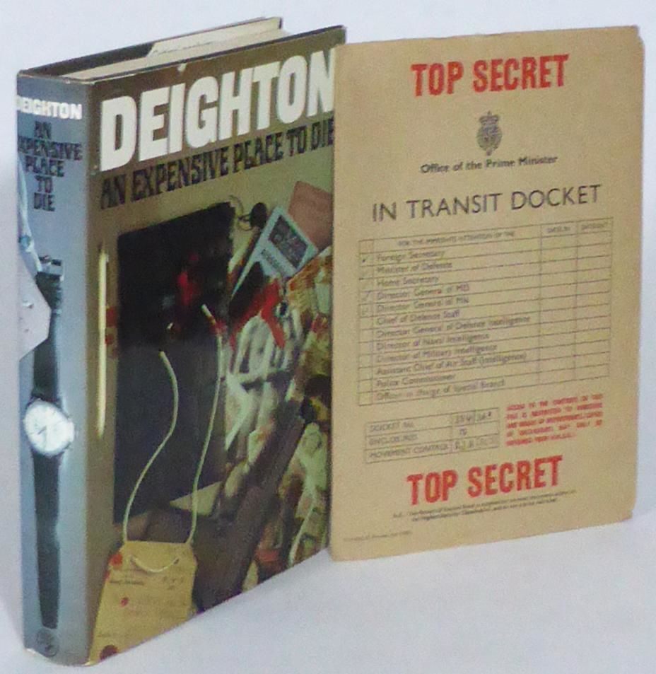 London; Jonathan Cape, 1967. First edition. 19,5x13,5 cm. 254 pp. + the ""Top secret"" folder loosely inserted, complete with all documents. Publisher's boards with printed dustjacket, designed by Raymond Hawkey. The jacket has a few short tears along the top edge and is a bit faded at spine. Spine is slightly out of square. There are a few light stains on the top edge, otherwise a fine copy of the fifth book in the Harry Palmer series.
