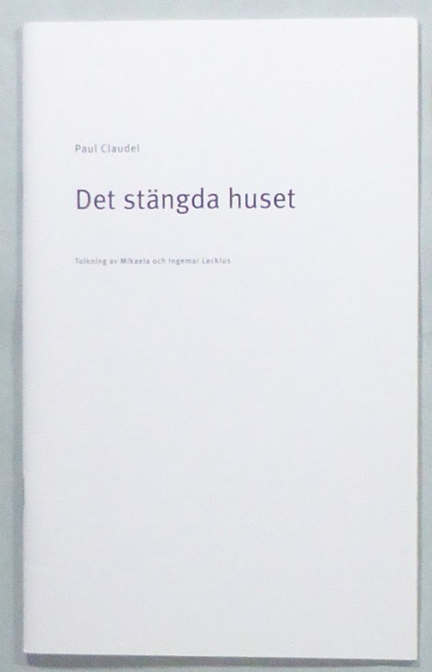 Stockholm; Signum, 2010. (Signums julbilaga 2010). Originalets titel: La Maison fermée (ur Cinq Grandes Odes, Paris 1910). 28x17,5 cm. 20 s. Klammerhäftad med tryckt omslag. Fint ex. Första svenska utgåvan av verket. Med essän ""Claudels oden"" av Ingemar Leckius.
