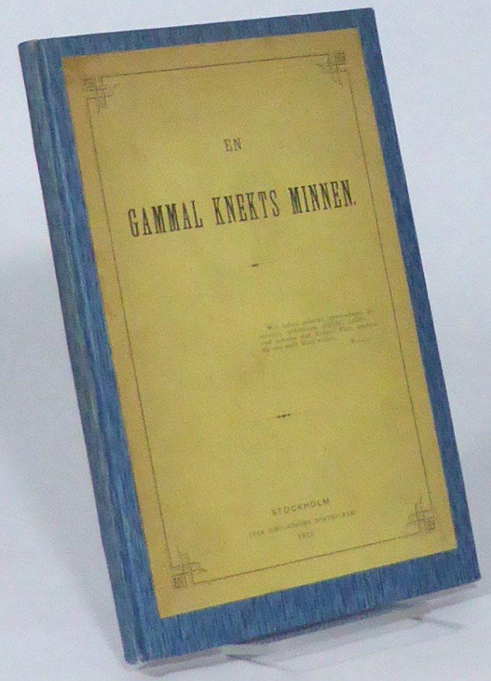 Stockholm; Ivar Haeggströms boktryckeri, 1872. 19x12,5 cm. 146, (2) s. Något senare blått klotband med främre omslag monterat på främre pärm. Omslaget aningen solkat. Fint ex. Hultin (1789-1883) deltog i Finska kriget 1808-1809 och deltog även i fälttågen i Tyskland och Norge 1813-1814. Han avancerade till stabskapten 1826 och till kompanichef 1828. Dessa minnen trycktes först som följetong i Ny Illustrerad Tidning.