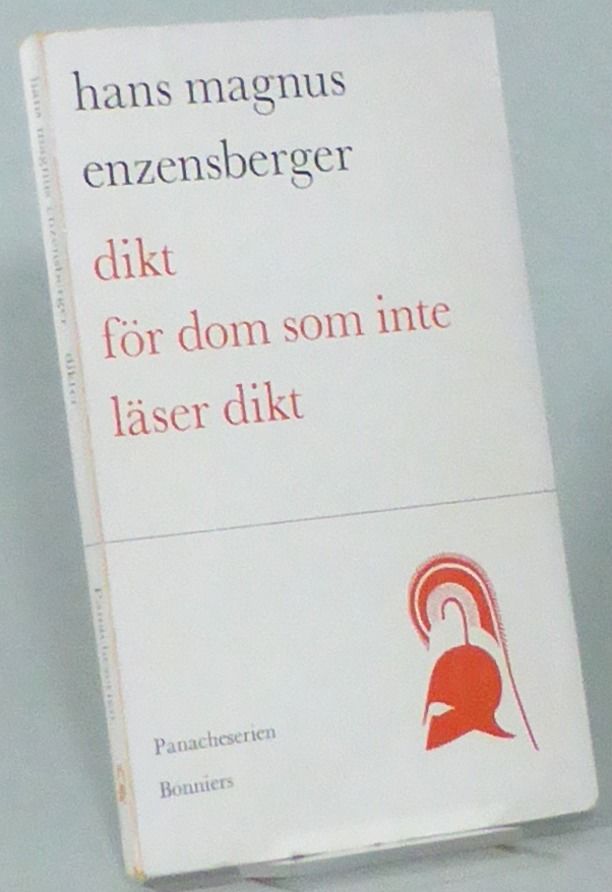 Stockholm; Bonniers, 1965. (Panacheserien). 19,5x12 cm. 93, (6, 1 blank) s. Häftad med tryckt omslag. Recensionsstämpel på bakre omslag. Aningen nötta ryggändar. Svagt vikmärke invid främre omslagets övre hörn. Fint ex. Dikter av Enzensberger, i urval av honom själv, hämtade från hans lyriska produktion från debuten ""Verteidigung der Wölfe"" (1957) till och med 1964 års ""Bildenschrift"". Här återfinns även ""Sommardikt"", som först senare gavs ut på tyska.