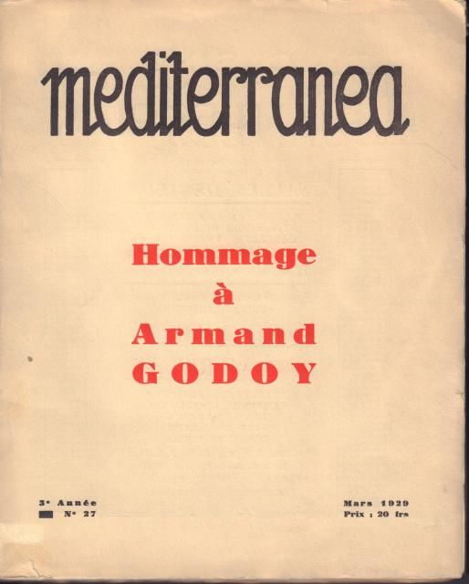Mediterranea, Revue Mensuelle, 3e année, No 27, Mars 1929. Hommage à Armand Godoy [cover title].
