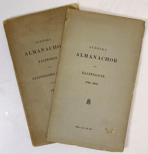 Sveriges kalendariska litteratur. 1. Svenska almanachor, kalendrar och kalendariska skrifter intill 1749. 2. Svenska almanachor och kalendarier 1749-1879.