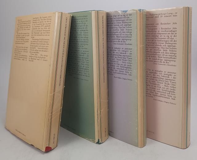 Forum 1976-1979. 347; 399; 391; 393 s. Illustrerade. Förlagets pappband med skyddsomslag (4 volymer). Skyddsomslagen delvis ganska hårt nötta och blekta med lagningar, nagg och veck.