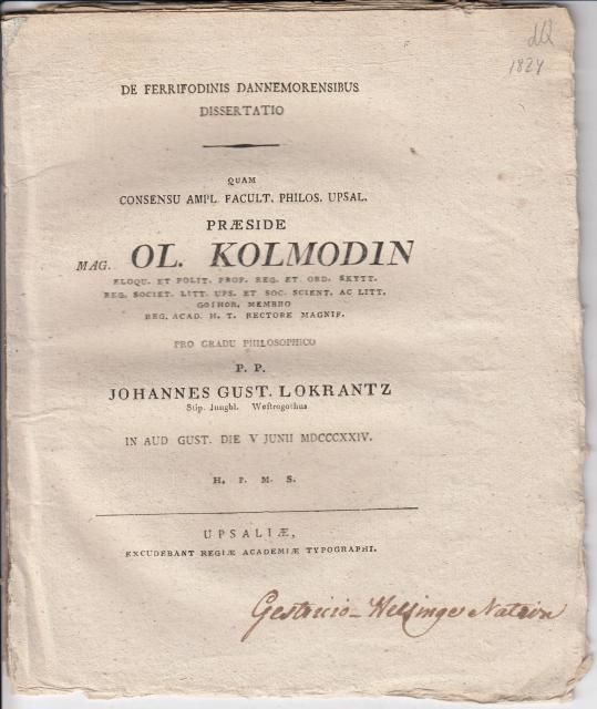 De ferrifodinis Dannemorensibus. Diss. resp. J.G. Lokrantz.