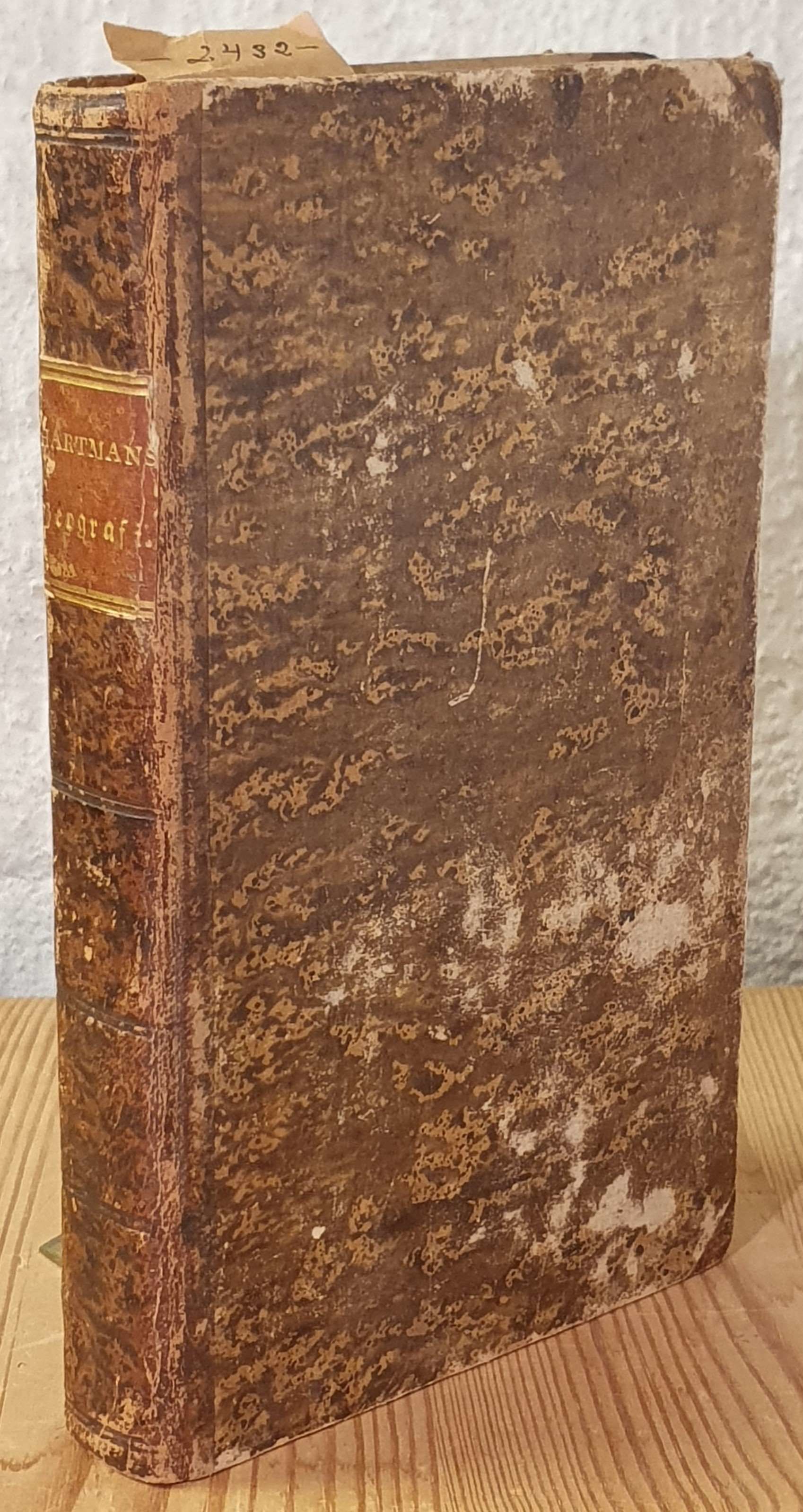 Af Gabr. Isr. Hartman. Femte å nyo öfwersedda och betydligen tillökta upplagan. Lund: C.F. Berling, 1827. (6),335,(1) s. Samtida nött halvskinnband. Inlagan med en del solkfläckar, främst i marginalerna men även i texten, utan att läsbarheten påverkas. Övre snitt med lagerfläckar. Namnstämpel på titelblad och på insidan av bakre pärm. Namnteckning på insidan av främre pärm Ernst Hindric Lagerlöf, Arwika 1829. 19,5 x 12 cm.