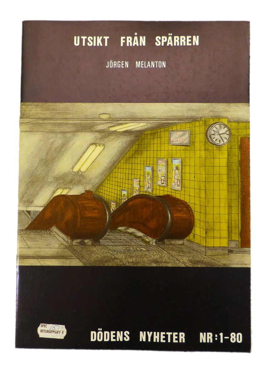 Mälsta, Henrik Mathiesen, 1980. 4:o. (16) s. Klammerhäftad med omslag. Med påklistrad prislapp. (Dödens Nyheter Nr:1-80.) Tecknade interiörer från framförallt Skanstulls tunnelbanestation. ”Jörgen Melanton (född 1949) är verksam som konstnär och har sedan debuten 1977 haft ett större antal utställningar, bland annat på Galleri Händer, Doktor Glas, Kavaletten, Galleri M, Konstnärshuset, Galleri Lars Bohman.”