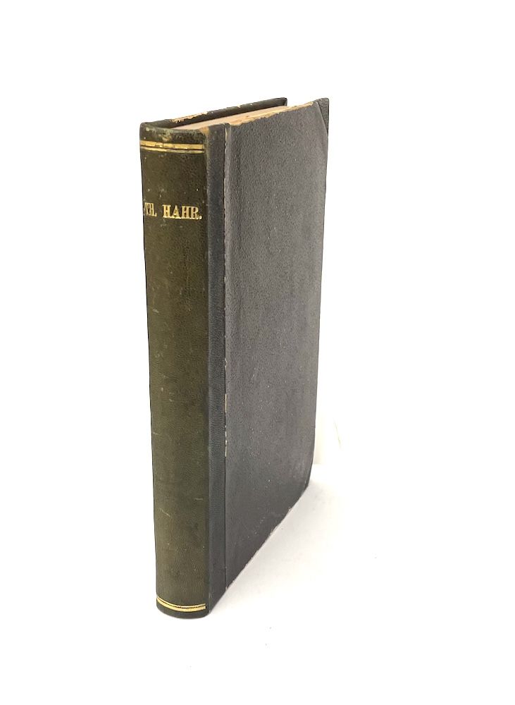 Stockholm, P. A. Norstedt & söner, 1881-82. 8:o. X,+ 374; X,+ (1),+ (blank),+ 464 s.+ 4 färglitogr. planscher. N¨got nött svart samtida hfrbd med guldornerad rygg. Ägarnamnteckningar av Elinor Oldenburg, daterad 1904, och Karl Erlin Kallin 1906 och med den senares exlibris. Schreeber 147. Kjellberg 866.02. Andra utökade upplagan, den första utkom år 1866. Theodor Hahr (1839-1927) var överjägmästare och lärare i jakt vid skogsinstitutet. De fyra färglitografierna med jakthundar.