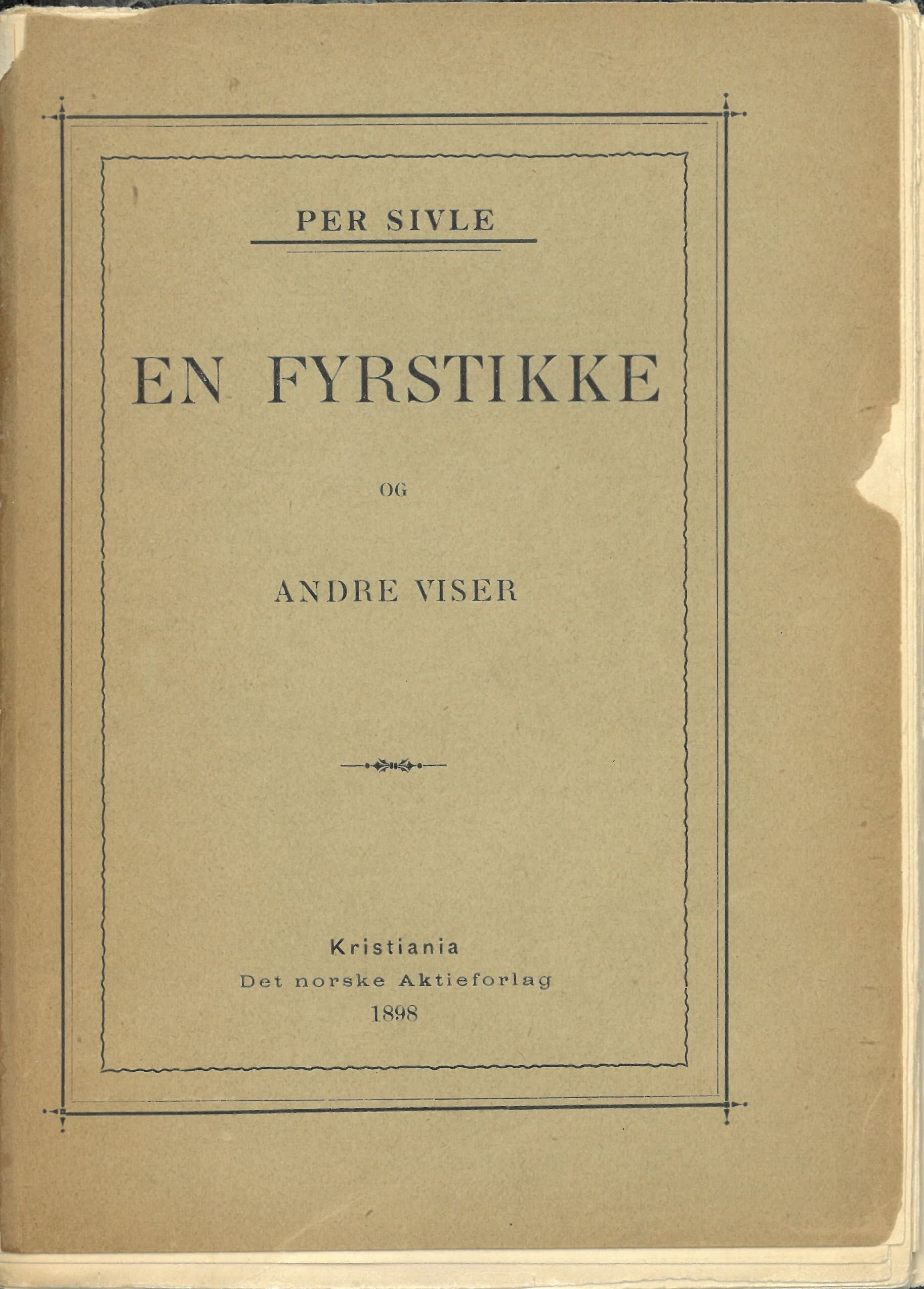 Kristiania, 1898. Liten 8vo. Nyere skinnryggbind med marmorerte dekler. Bundet med de originale omslagene. Ubeskåret. 34 s. (Det norske Aktieforlag.) Norsk. Lite hakk i foromslaget, ellers et meget pent eksemplar.