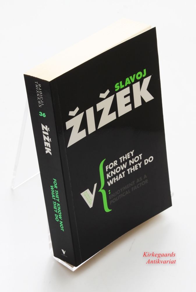 Verso Paperback, 2008 (1991). CVII, 288 pp. Fine clean, unused copy. Psychoanalysis is less merciful than Christianity. Where God the Father forgives our ignorance, psychoanalysis holds out no such hope. Ignorance is not a sufficient ground for forgiveness since it masks enjoyment; an enjoyment which erupts in those black holes in our symbolic universe that escape the Father's prohibition.Today, with the disintegration of state socialism, we are witnessing this eruption of enjoymnet in the re-emergence of aggressive nationalism and racism. With the lid of repression lifted, the desires that have emerged are far from democratic. To explain this apparent paradox, says Slavoj Zizek, socialist critical thought must turn to psychoanalysis. For They Know Not What They Do seeks to understand the status of enjoyment within ideological discourse, from Hegel through Lacan to these political and ideological deadlocks. The author's own enjoyment of 'popular culture' makes this an engaging and lucid exposition, in which Hegel joins hands with Rossellini, Marx with Hitchcock, Lacan with Frankenstein, high theory with Hollywood melodrama.